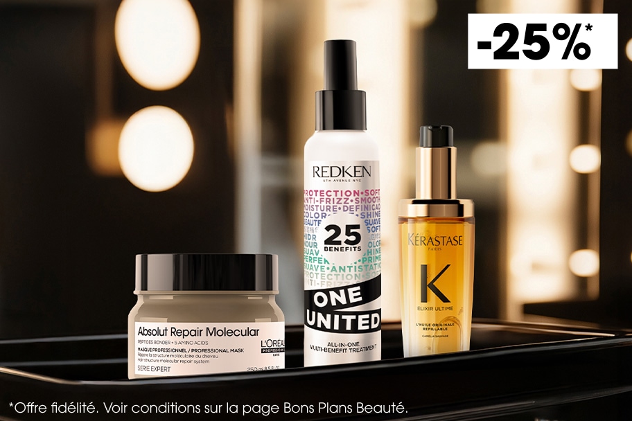-25% sur une sélection de produits Kérastase, L'Oréal Professionnel, Redken et Shu Uemura.