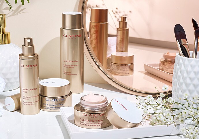 Forte de 65 ans de savoir-faire dans l’art de la formulation, la recherche Clarins innove en associant dans la formule des soins Nutri-Lumière des extraits puissants de fleurs et de fruits du marronnier d’Inde, symbole de longévité et de renaissance.