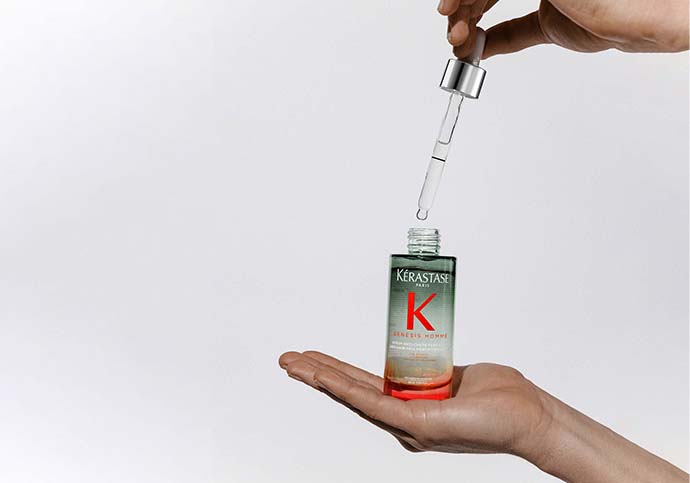 Grâce à sa double action anti-chute et redensifiante, la gamme 100% personnalisable Genesis Homme permet de ralentir les chute de cheveux.