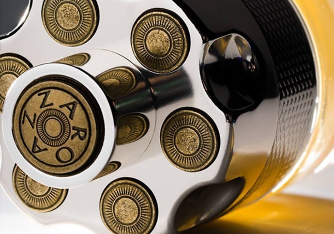 Sa forme unique en forme de barillet symbolise le goût du jeu comme du défi.