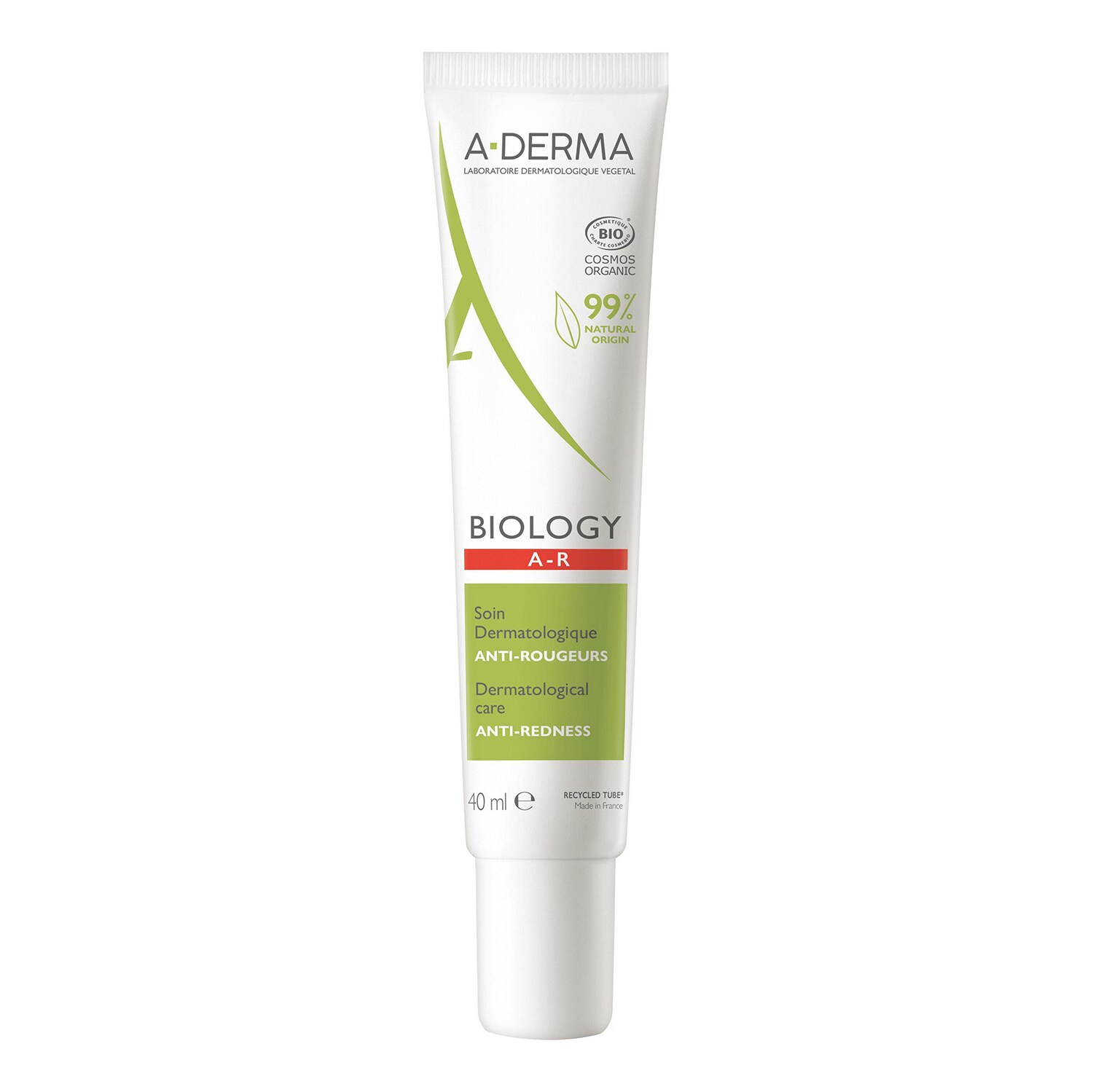 Lire la suiteLes peaux à tendance couperosique, qui présentent des rougeurs au niveau du visage, nécessitent un soin efficace et sécuritaire. Le Laboratoire A-DERMA a formulé BIOLOGY AR SOIN DERMATOLOGIQUE ANTI-ROUGEURS, un soin dermatologique à la tolérance optimale et certifié BIO, adapté à ces peaux fragiles. En associant l’Extrait de Mandarine à l’actif phare de la gamme BIOLOGY, la Sève d’Avoine Rhealba® BIO, il diminue et limite la réapparition des rougeurs, apaise immédiatement et durablement les sensations d’inconfort et d’échauffement tout en apportant une hydratation 24 h(3) et une protection anti-pollution. BIOLOGY AR SOIN DERMATOLOGIQUE ANTI-ROUGEURS à 99 % d'origine naturelle ne comprend que les ingrédients essentiels pour assurer une tolérance optimale. Testée sur peaux allergiques, en association aux traitements médicamenteux et en post-laser vasculaire(1), sa formule sans parfum ni huile essentielle s'applique sur le contour de l’œil et la peau du visage. Sa texture fluide, effet frais, non comédogène, peut être utilisée seule ou mélangée (1 à 3 gouttes) aux crèmes dermatologiques hydratantes BIOLOGY pour un soin sur mesure.