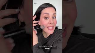 1. Si vos pommettes ne sont pas visibles et que vous souhaitez les accentuer : positionnez le pinceau blush avec la pointe à la racine des cheveux au niveau de l’oreille et réalisez des mouvements de va-et-vient de la racine des cheveux jusqu’au centre de la joue afin de bien estomper la matière.